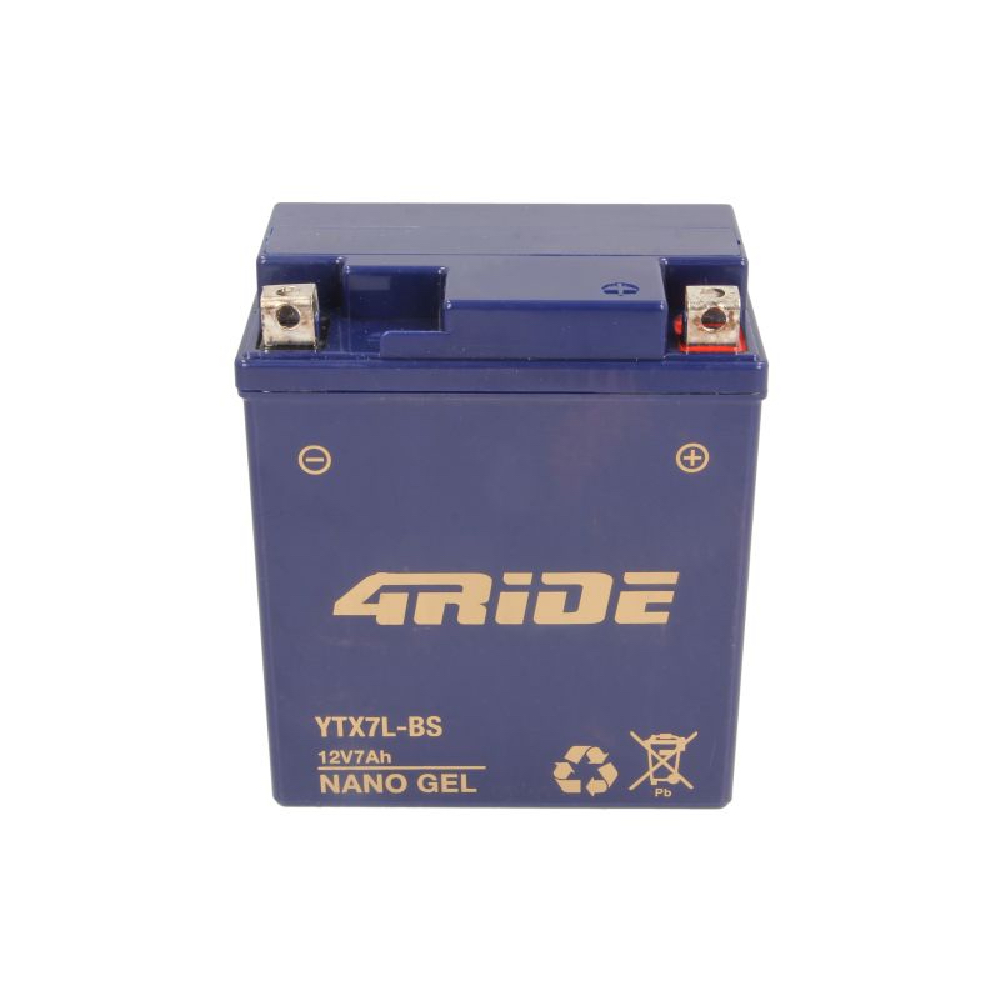 Battery Gel/Starting 4 RIDE 12V 7Ah 120A R+ Maintenance free 113x69x130mm Started YTX7L-BS fits: APRILIA COMPAY, MOJITO, RS4, SR; BETA ALP 4T; BIMOTA SB; HONDA CA, CB, CBF, CBR, CMX, CRF 50-1100