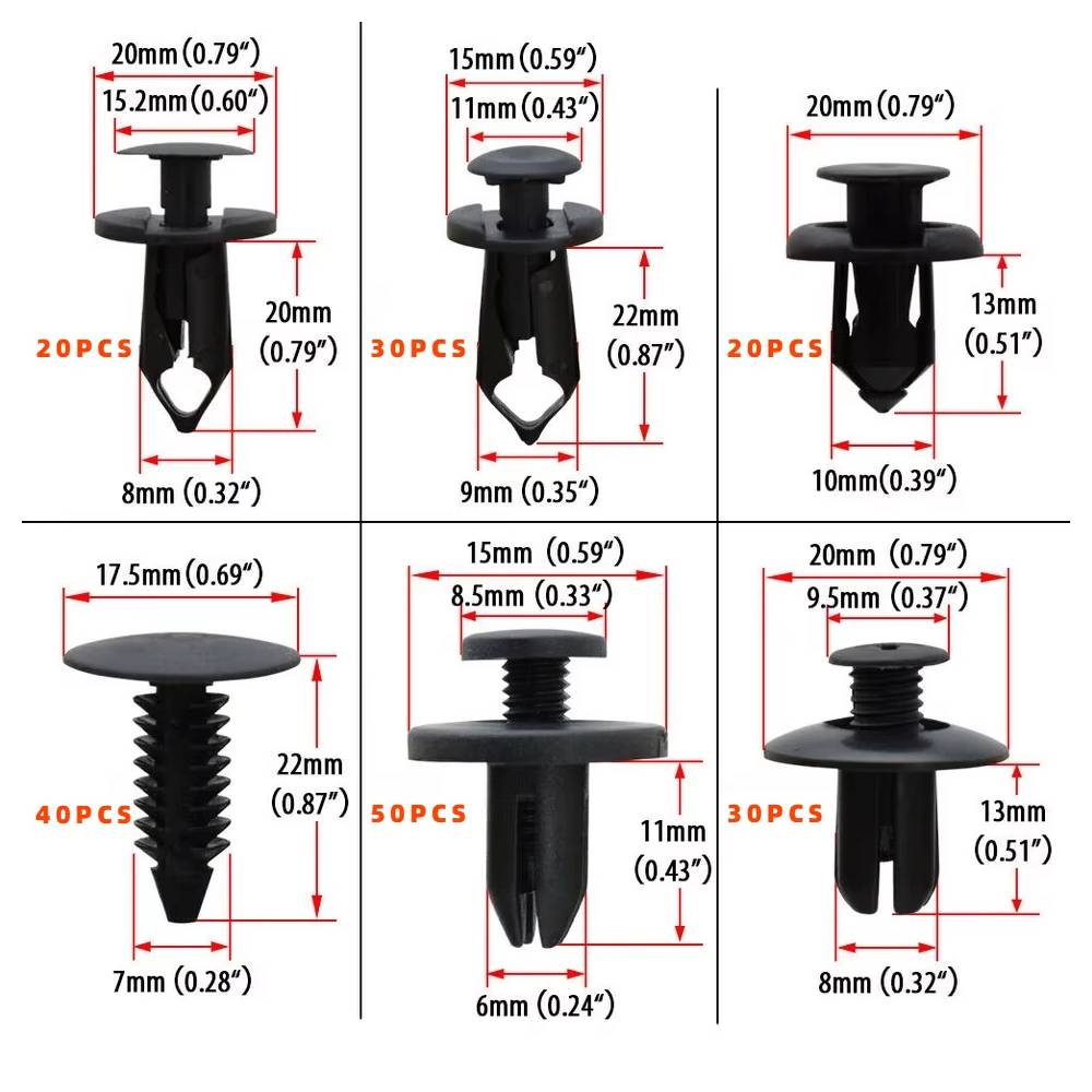Aceste clipsuri din plastic sunt perfecte pentru fixarea rapidă și permanentă a pieselor auto si moto , cum ar fi aripile, barele de protecție, ușile sau panourile laterale.