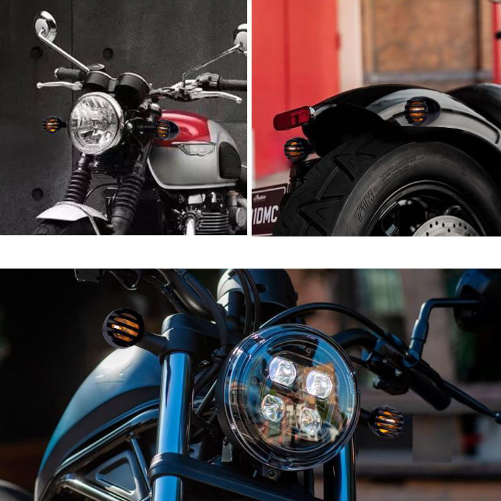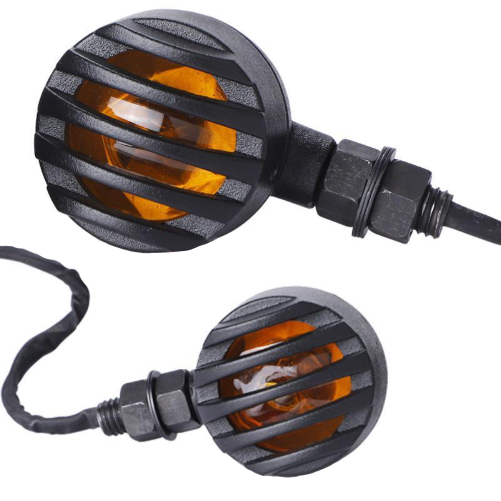 Semnalizari Moto Negru Chopper Bobber Cafe Racer Custom Grilaj Metal