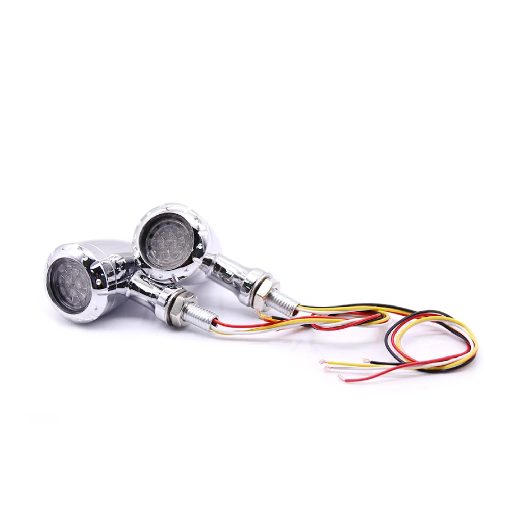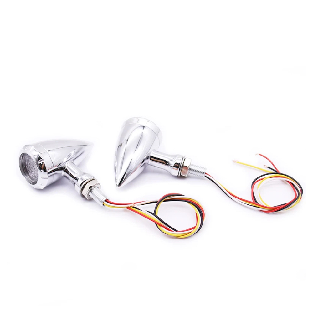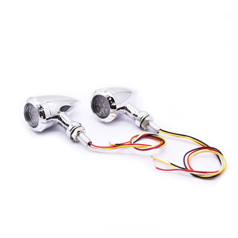 Set 2 semnalizari moto argintii LED Chopper glont pozitie stop A879