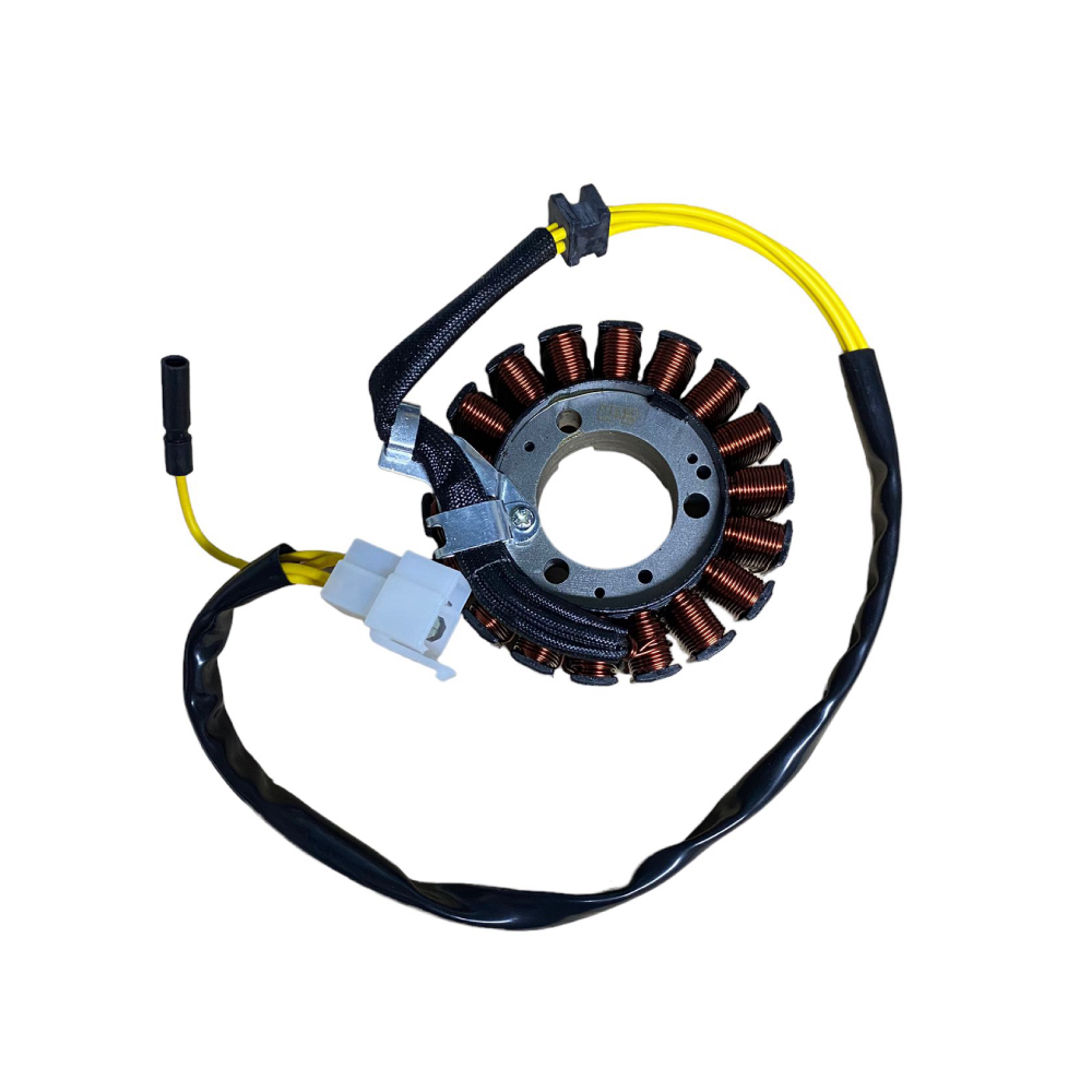 Statorul este o componentă esențială care generează curentul electric necesar pentru sistemul de încărcare al bateriei și funcționarea altor componente electrice ale motocicletei.